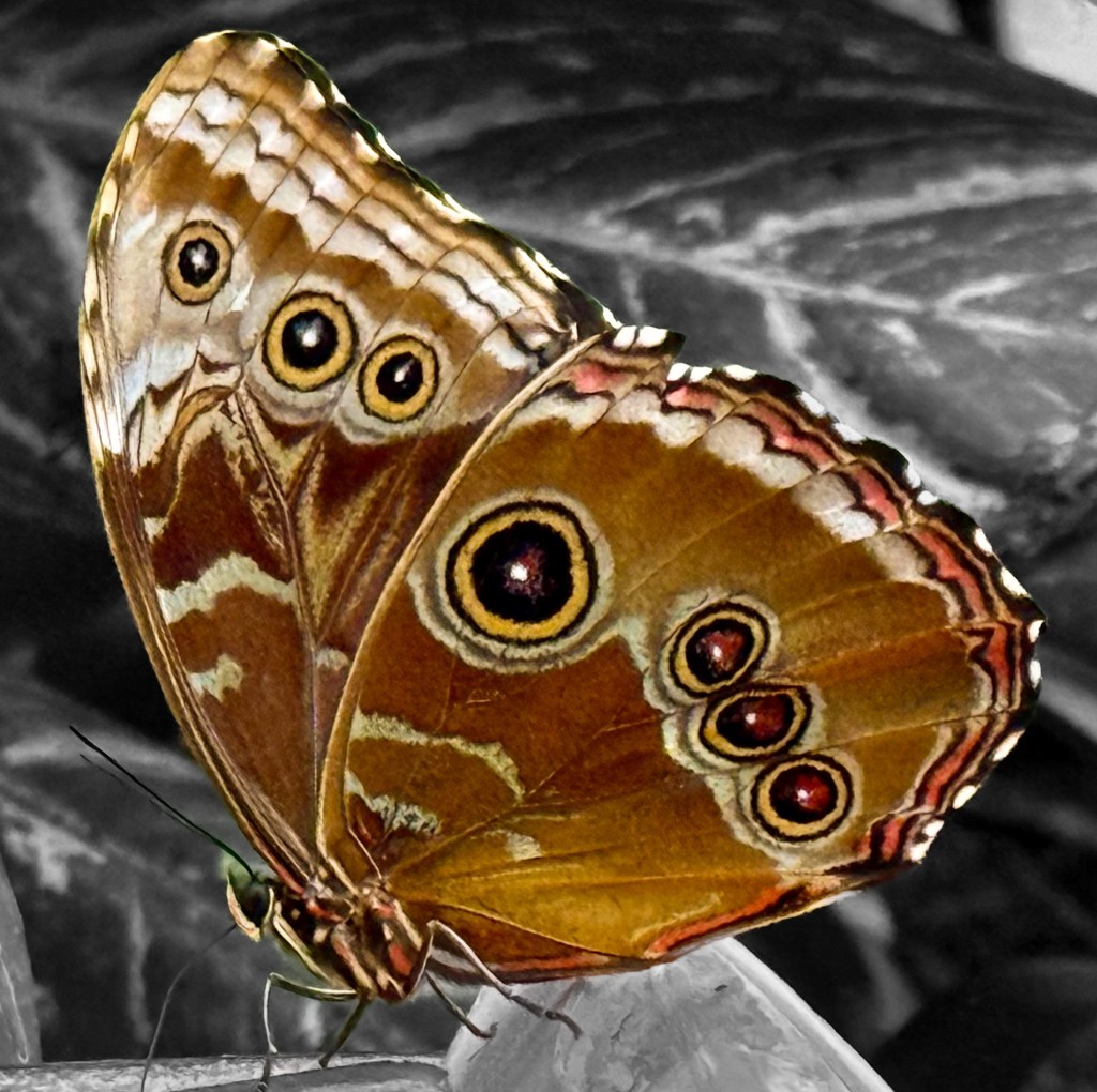 This was the butterfly (after a bit of processing with the aim of making it easier to pick out from the background – I will usually do a bit of processing, either just in Photos on iPhone or with LightRoom (usually it’s iOS app):
