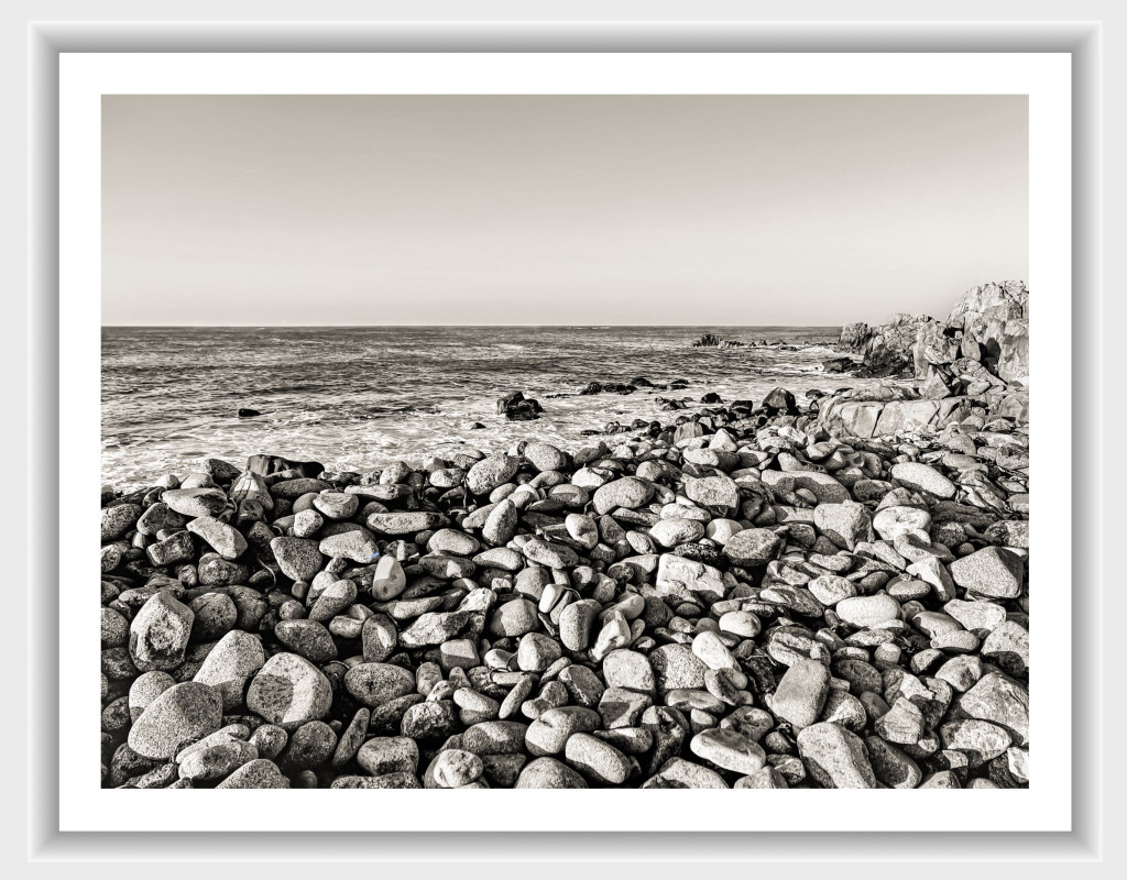 On rocky beaches boulders stand and shingle clatters down the age old slope,